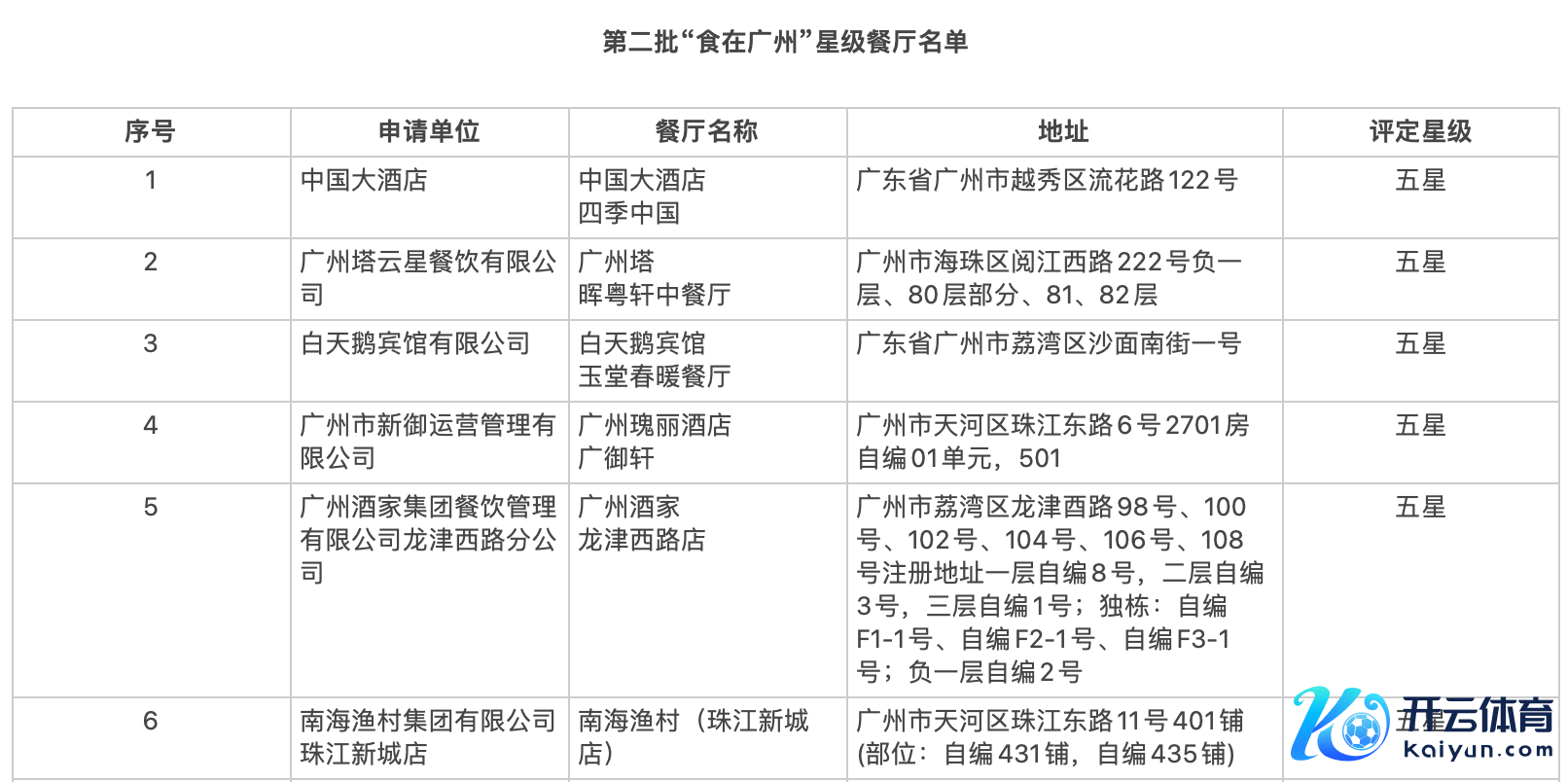 第二批“食在广州”星级餐厅、品牌食物、品牌名店名单